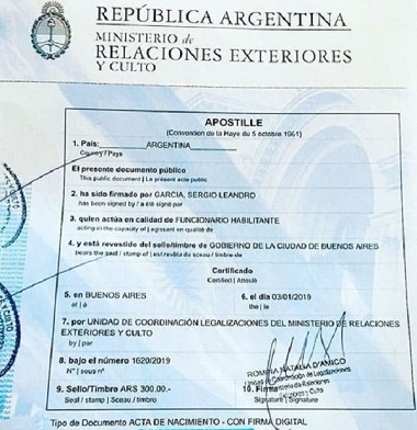 Entonces, hay que comenzar con el proceso para dar legitimidad y validez a los documentos en Argentina y las redes diplomáticas.